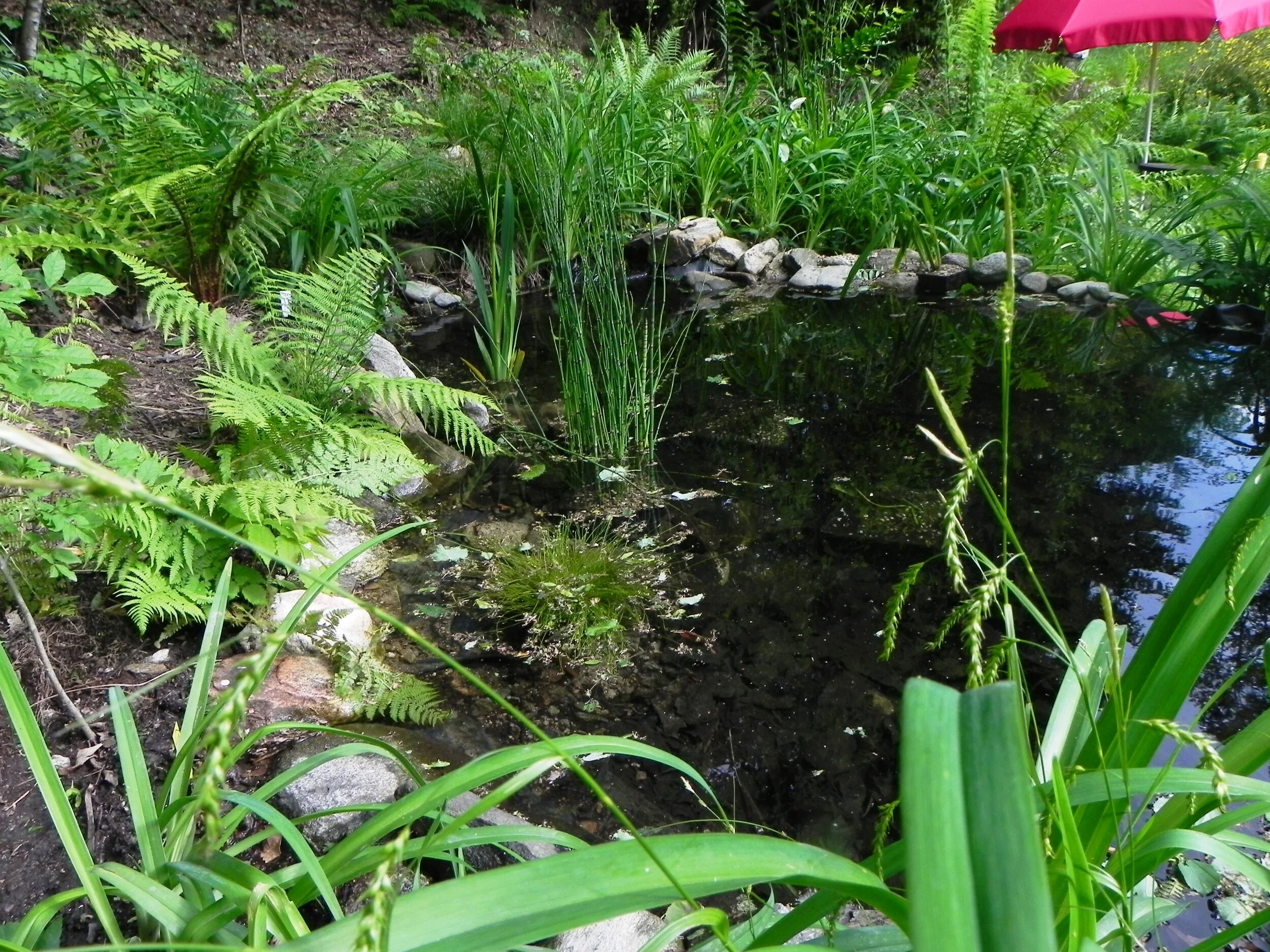 ampio giardino con biotopo, pergola, ciotola del fuoco, amaca e lettini